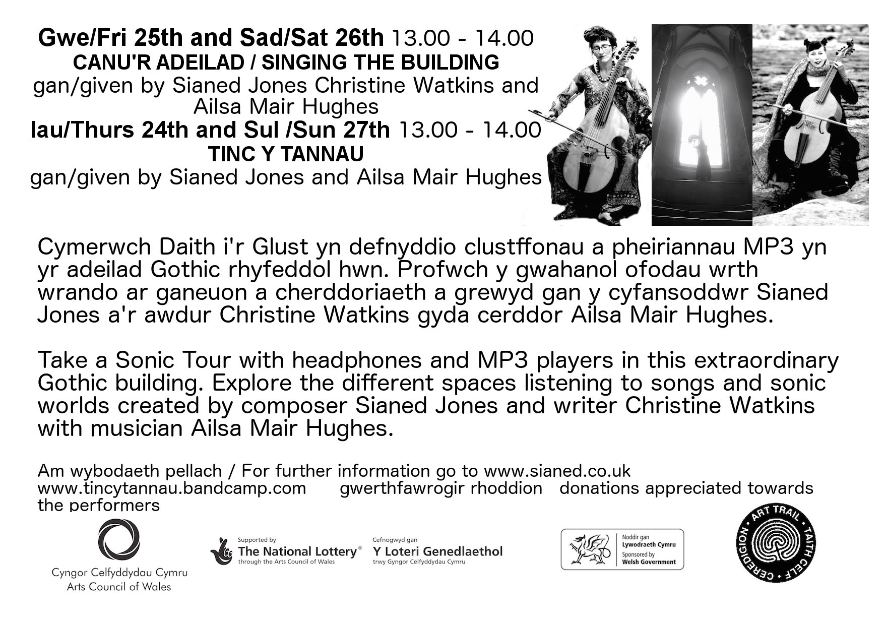 24th-27th Canu’r Adeilad performances at Old College, Aberystwyth with Sianed Jones and Ailsa Mair Hughes during Ceredigion Art Trail